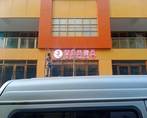 【德軒案例】古交商場(chǎng)入口——不銹鋼雙層亞克力發(fā)光字